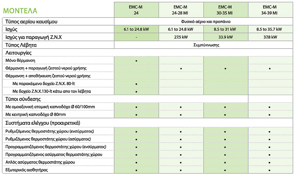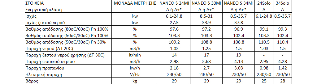 - Διατίθεται σε 3 διαφορετικά μοντέλα ισχύος NANEO S 24/28MI, NANEO S 30/35MI, NANEO S 34/39MI.